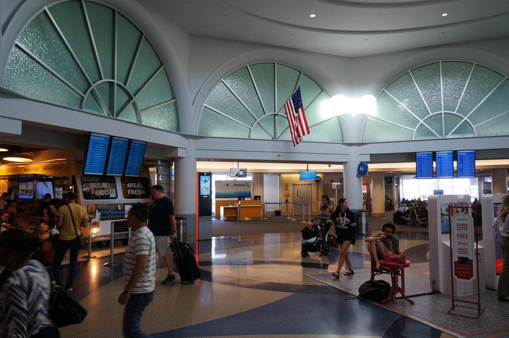 既然到了洛杉矶机场,虽然是转机,但是也要出去感受一下洛杉矶的空气,再说不是还有4个小时的转机时间嘛。在机场外面小小地转了一圈,都是形色匆匆的旅客。又回到登机口附近吃了个晚饭,然后就开始等待十点半的飞奥兰多的航班了。虽然转机时间一共六个小时,之前也在想六个小时的漫长时光如何度过,但是实际上,入境需要两小时,机场逛逛再加吃饭用掉两小时,再办办手续啥的,时间倒也不知不觉就过去了。