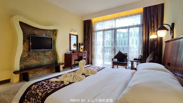 虽然森波拉度假森林距离广州也就1小时左右的车程,也有很多游客是采取当天来回的方式游玩。但经过我亲身“考察”后,还是觉得在这家2008年中国酒店星光奖中被评为 "中国十佳主题酒店"的森波拉酒店住一晚是绝对值得的!酒店的装潢别具一格,大量运用了古船木、火山石、桫椤树等远古元素和材料,匠心独运使得处处如同艺术殿堂,怪不得有"远古森林里的皇宫"的美誉。
