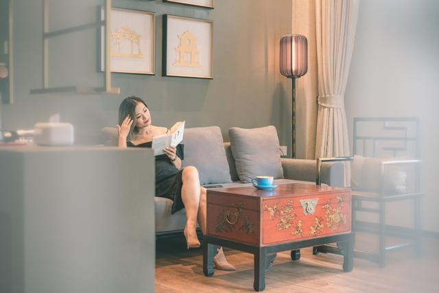 房间的会客区空间颇为宽敞,既有让人正襟危坐的太师椅,也有人自然放松的布艺沙发。这样的混搭却毫无违和感。