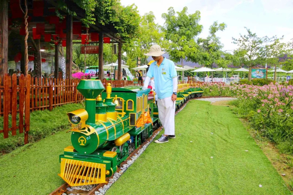 盈香花田小火车采用复古的蒸汽设计