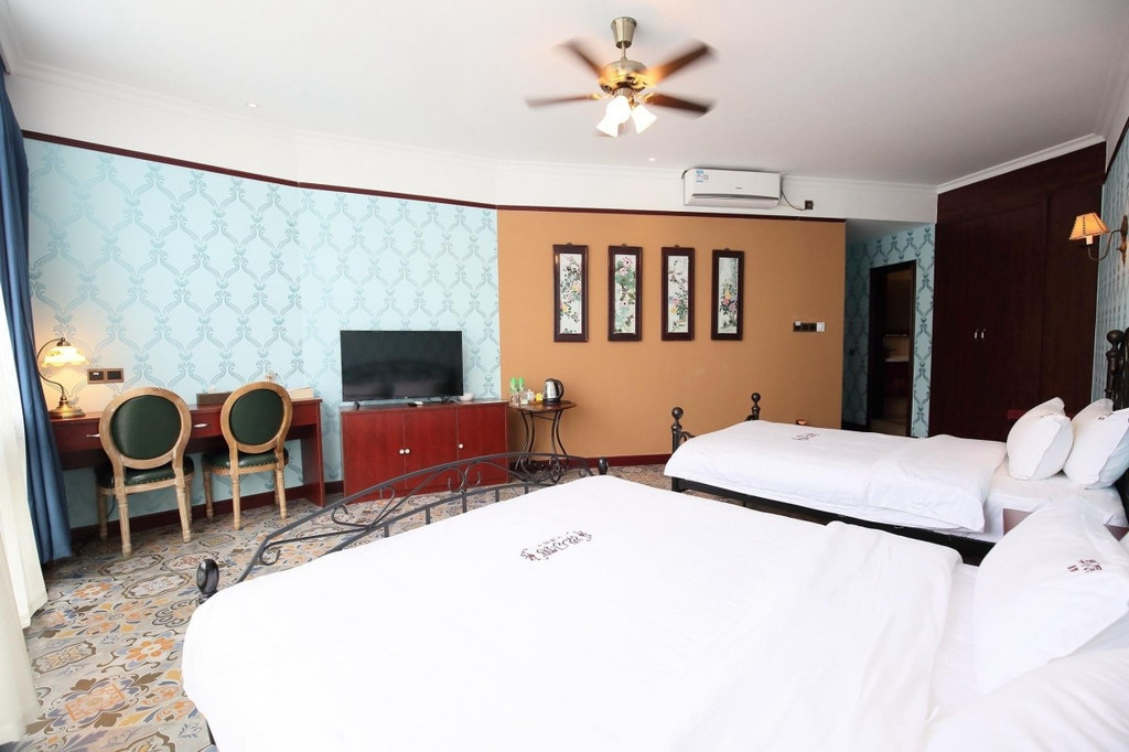 金粉世家是亲子房型,1.8米大床配答1.2米小床,最适合一家三口!