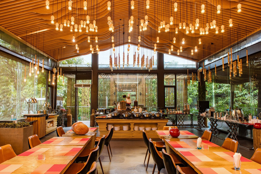 休息整顿完毕就可以去66号公路餐厅享用美食啦,它位于办理入住前台的后方,跟着指示牌久能找到了。满满的阳光玻璃房,也是吃早餐、自助餐、晚餐的地方。一眼望去明亮通透,很有小资情调,犹如藏在森林里的水晶盒一般。