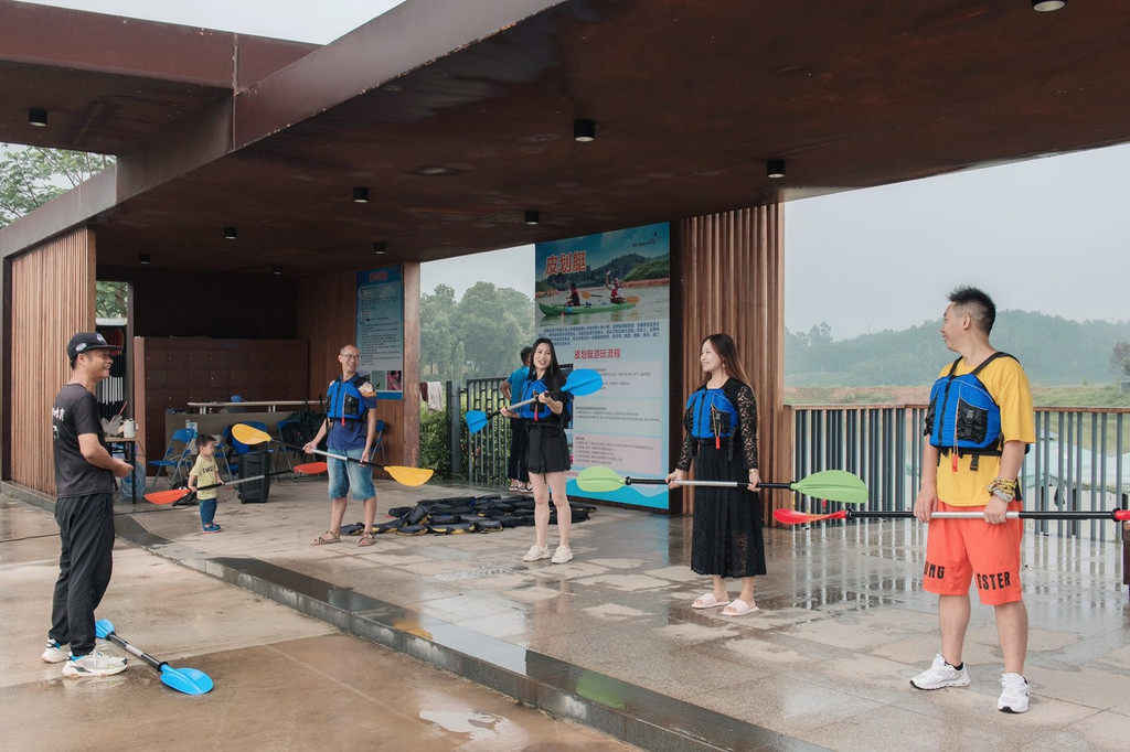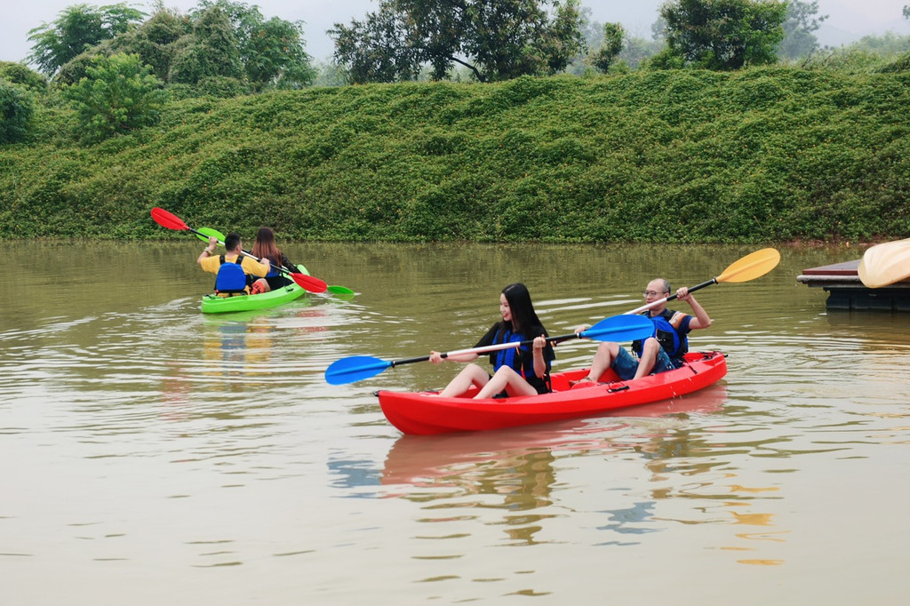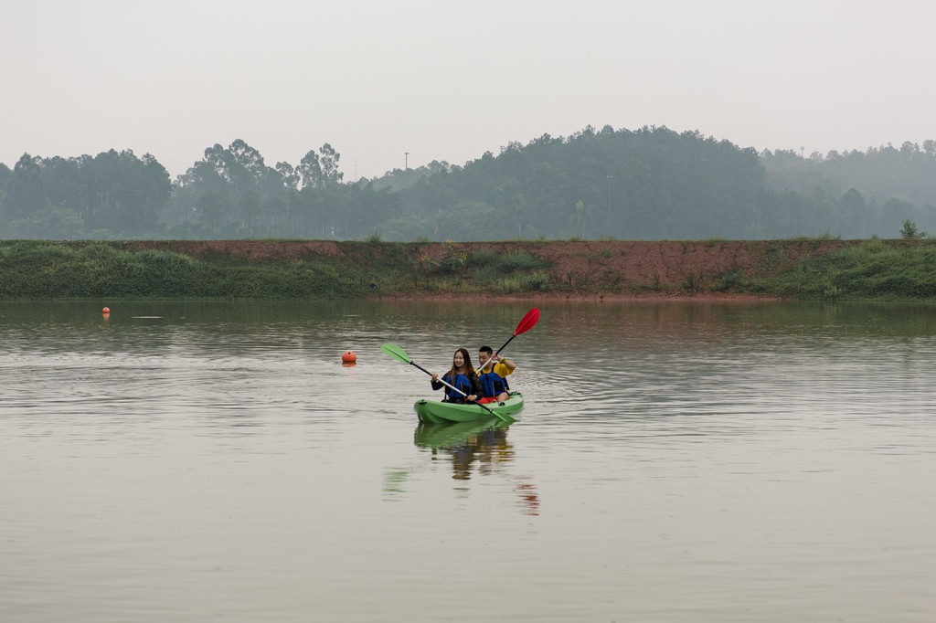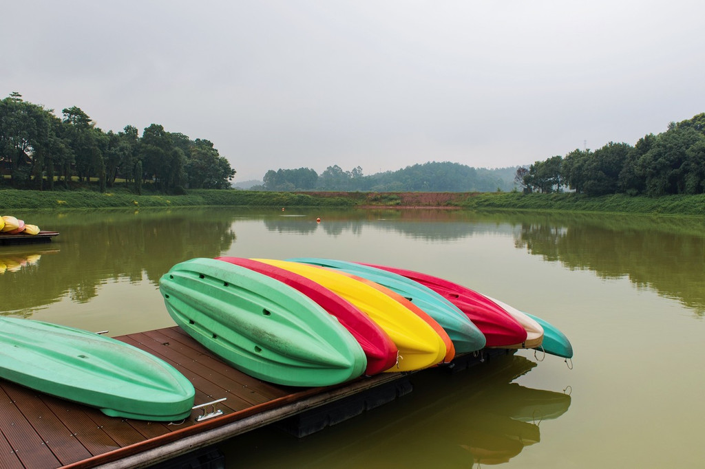 吃完午饭,最适合度假区里散步消食,这里有很多大人玩儿的项目也不容错过。像这个皮划艇就很不错,两个人一条船,在山清水秀的环境里开启一场水上运动,也是一件极其愉快的事情。