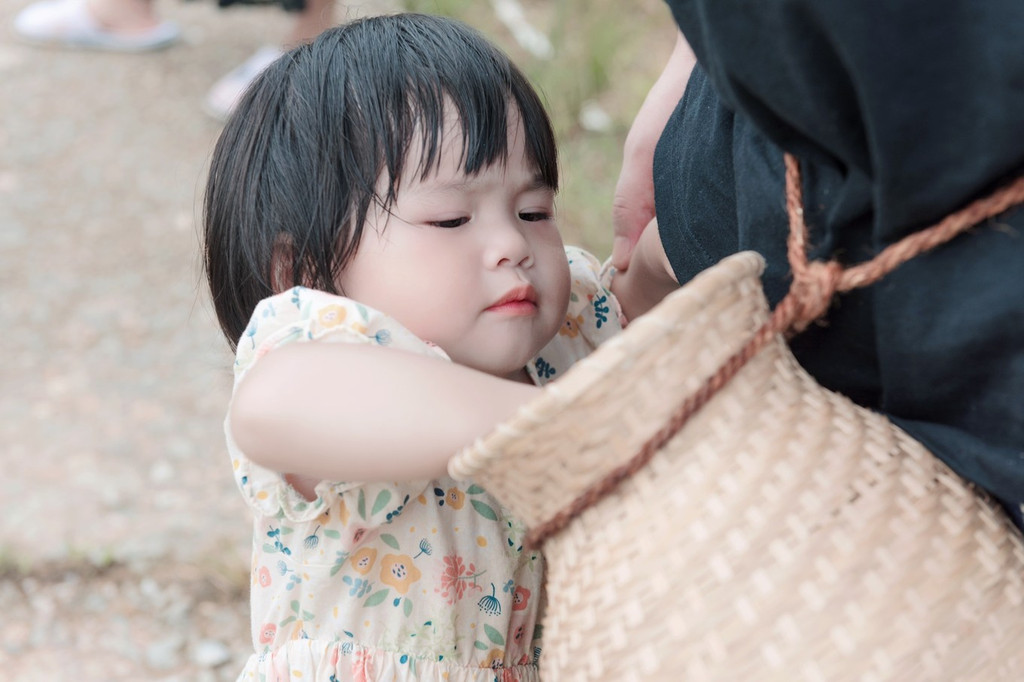 小家伙有模有样的跟着大人学,虽然采的不专业,但一直很卖力的采着叶子往她爸爸的竹篓里扔,那认真的模样显得特别可爱。