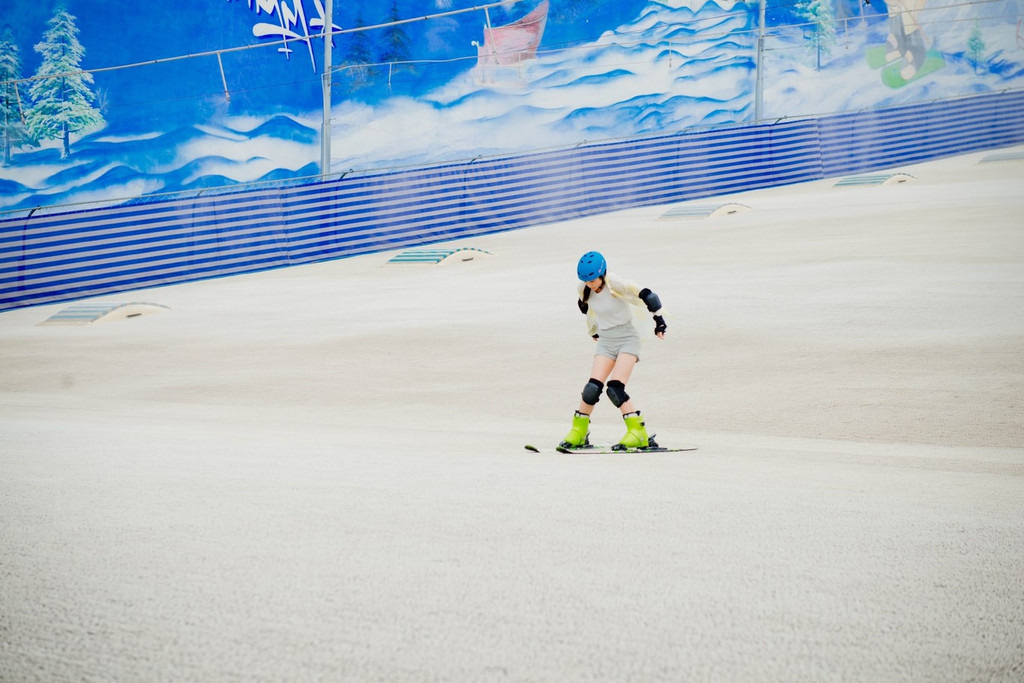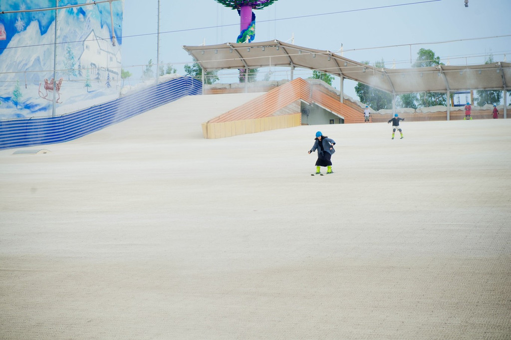 玩水归来,最适合去旁边的旱雪场滑雪,优惠价几十块钱就可以体验,场地打破了只能在冬季低温环境中进行的自然规律,而且滑雪设备齐全,根本不用担心安全问题。