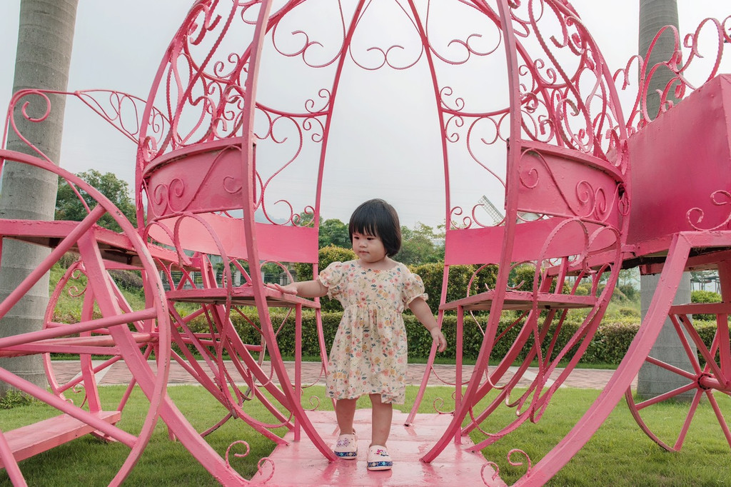 园内的梦幻风车、爱心岛和爱心拱桥,水晶教堂和爱情码头隔水相望,也很适合出片,好多拍婚纱照的都把这儿作为取景地。我也在这儿给小侄女留下了很多萌照的倩影。