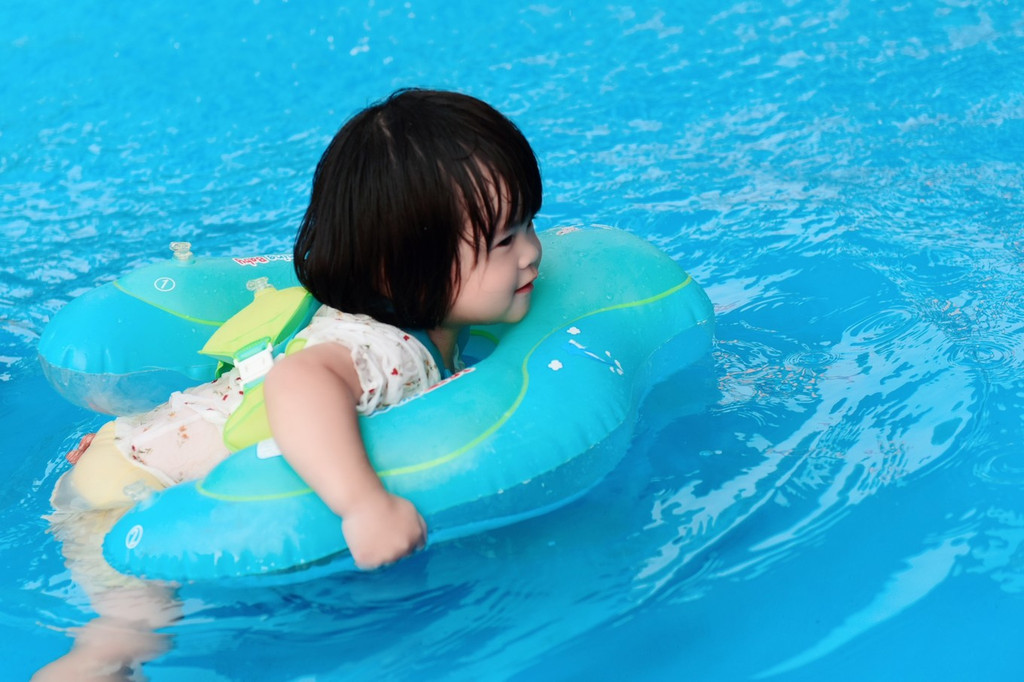 我们换上泳装就去体验了,玥玥好像天生就不怕水,据我哥说七个月时就带她去海边了,我打趣的笑道:“真好,从小锻炼的勇气,连上游泳兴趣班的钱都省了!”。一放到大大的泳池里她就嘻嘻哈哈乐个不停,根本就不需要大人扶。
