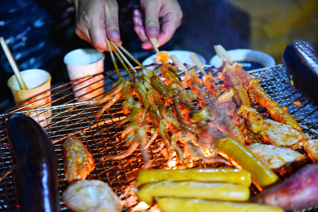三下五除二就可以自己上架烤了,那种气氛特别开心,动手的乐趣都在这一串串油滋滋的烤串里呈现。香味袅袅缭绕,与森林清新的气息相得益彰。