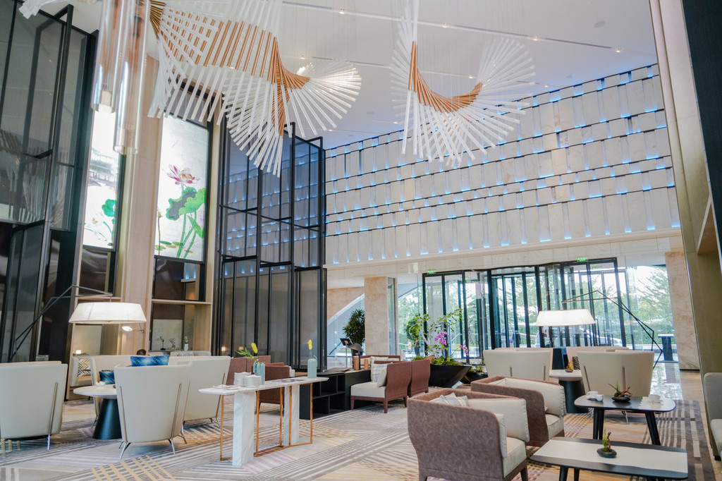 佛山南海保利皇冠假日酒店地处粤港澳大湾区及三龙湾高端创新集聚区,旁边便是静谧的文翰湖,酒店还提供周末免费穿梭巴士轻松往返广州南站和长隆欢乐世界,出游很是便利。