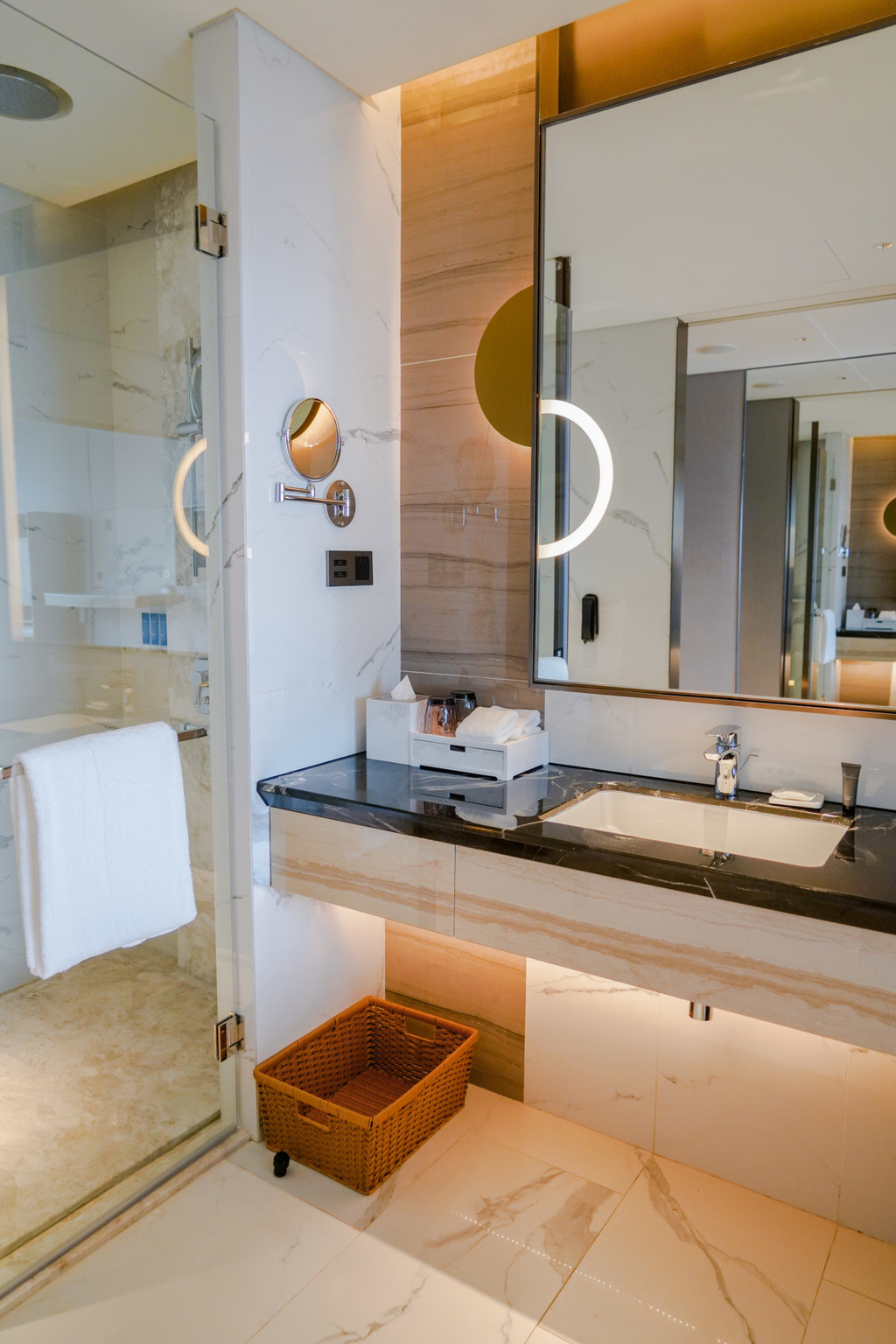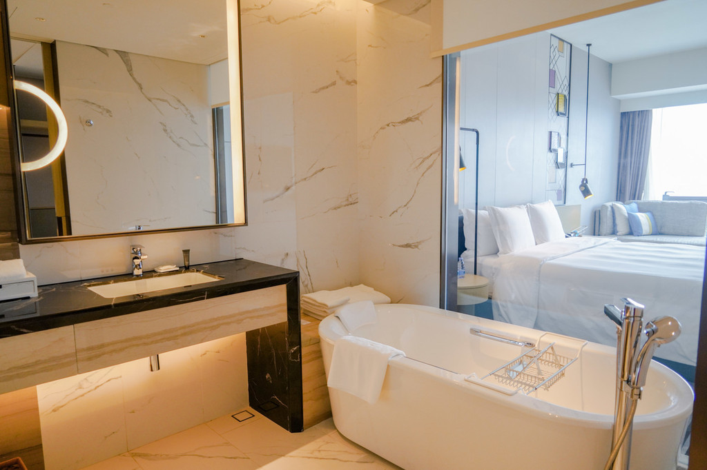 干湿分离就不必多说了,肯定都有,房间还配备了浴缸,无论是休闲度假还是商务出行,晚上在房间里泡上一个热腾腾的澡,一天的疲惫尽去,再去舒适柔软的床上睡一觉,又是元气满满的一天。