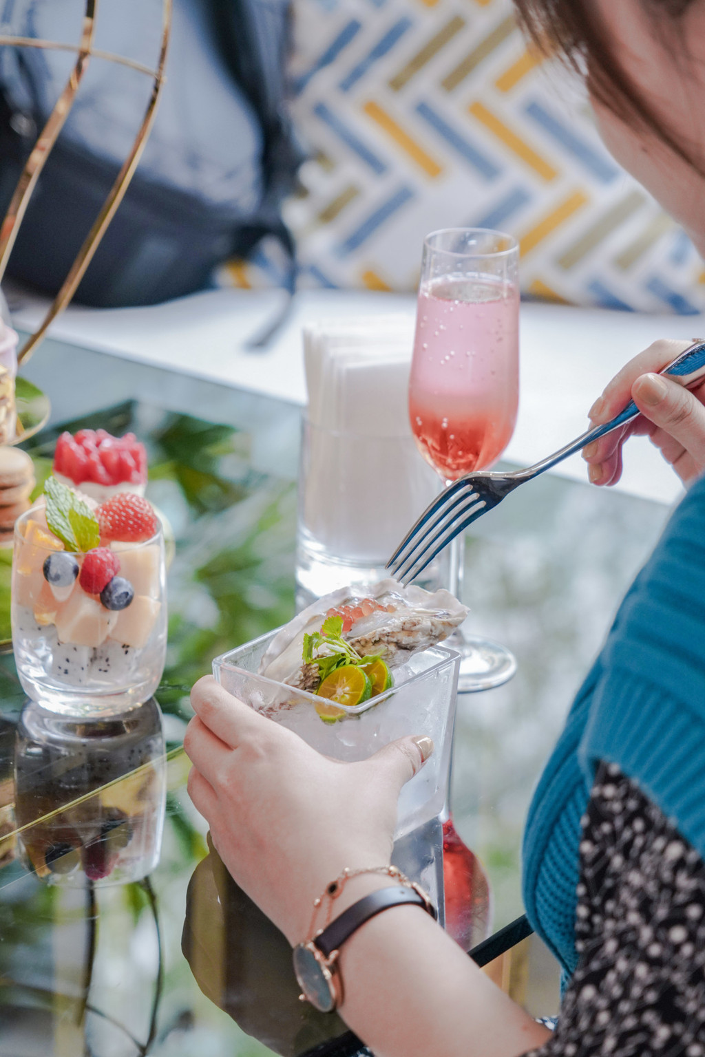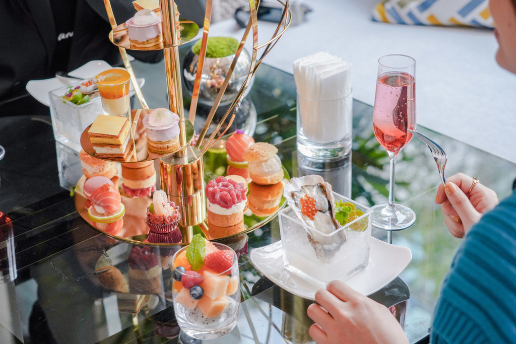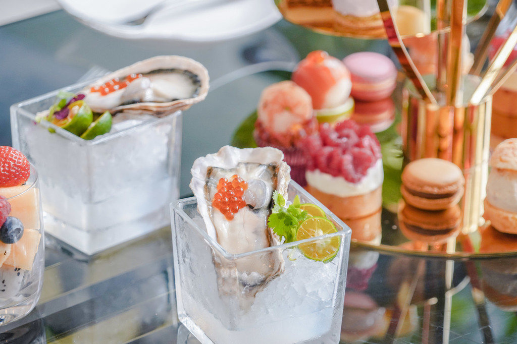 特别有意思的是,下午茶里面居然有生蚝!肥美的生蚝在冰镇着,上面是色泽澄净的鱼子酱,给人不一样的味觉体验。