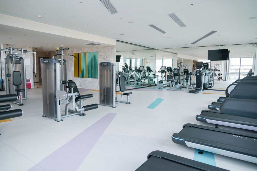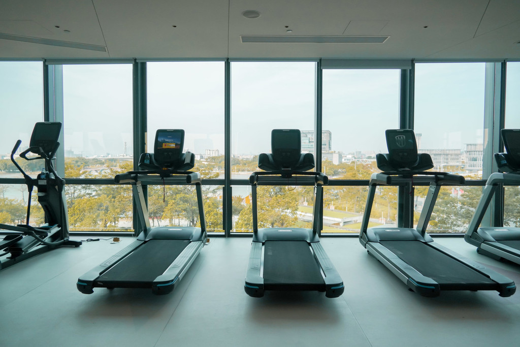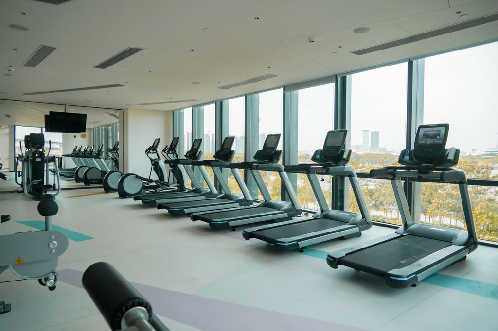 健身房里配备了进口的健身设施,器材种类很多,无论是有氧运动还是无氧运动,都能在这里找到合适的器材,在落地窗前跑步,还能欣赏到窗外文翰湖的风光。