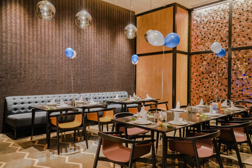酒店有3个风格各异的餐厅和2个酒廊,晚餐我们选择在月色西餐厅,这是一个供应中高端中西式早、午、晚自助餐的餐厅。餐厅整体环境优雅简约温馨,坐在餐厅里用餐还能观赏中庭花园的美景。