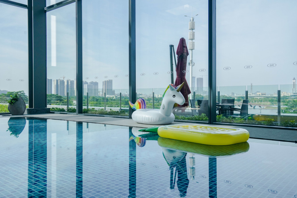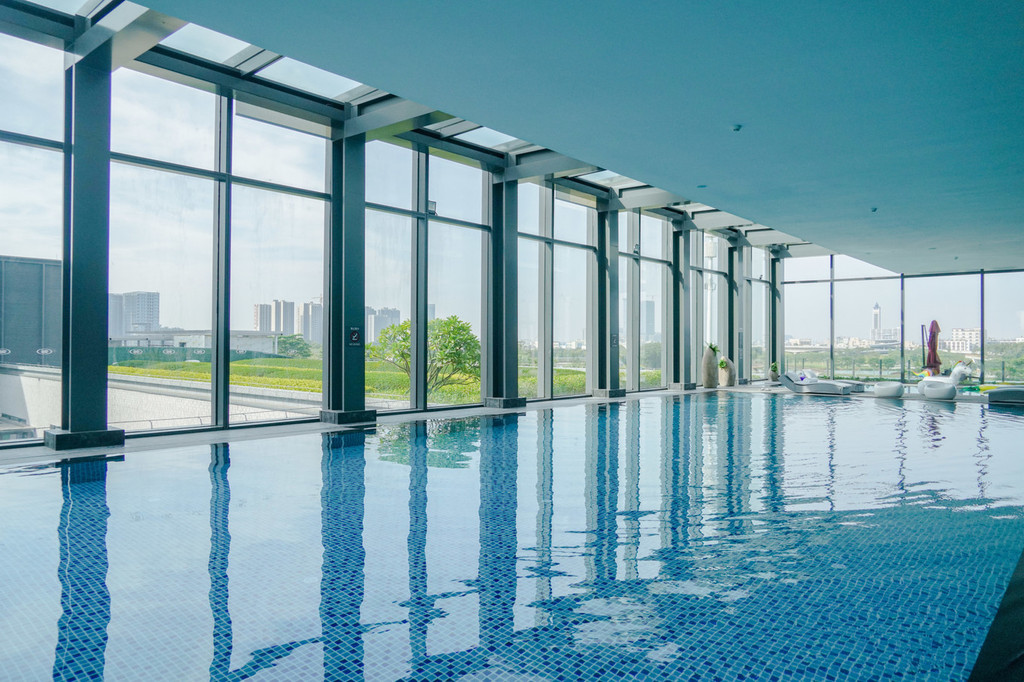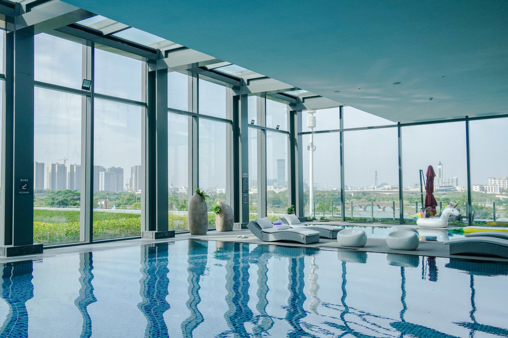 泳池实在是太美了,270度的落地窗让整个泳池明亮宽敞,还能看到窗外的风景,让人觉得在这里游泳都是一种享受。游泳池是恒温的哦,即使是秋冬,也可以尽情畅游。