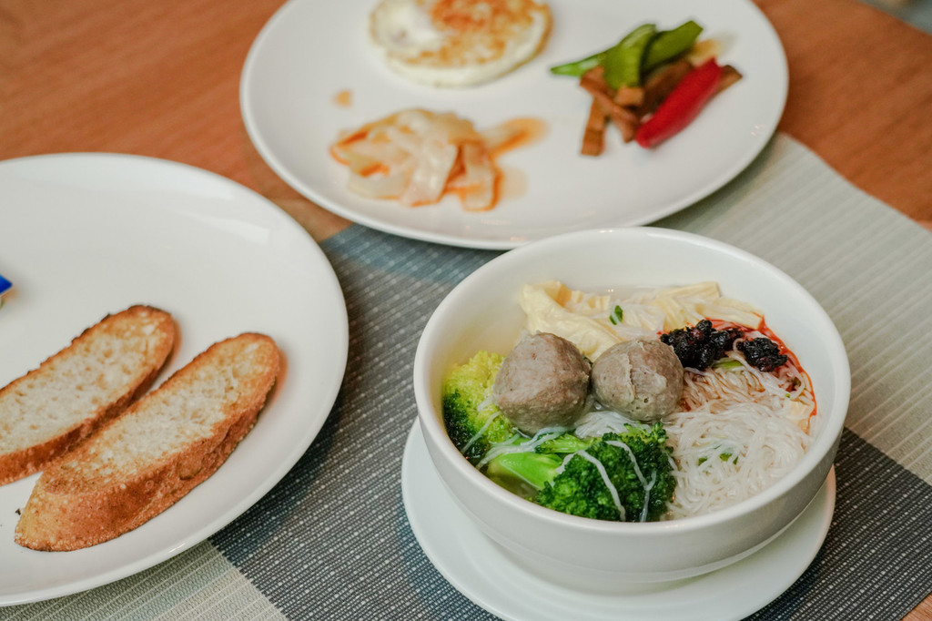 早餐也是在月色西餐厅,这里有中西式早餐可供选择,餐厅内还有多个开放厨房,用以实时提供汤粉粥面等。在阳光明媚的早上,首先来到这里慰藉一大早空空的胃,是大多数客人早起的第一件事。