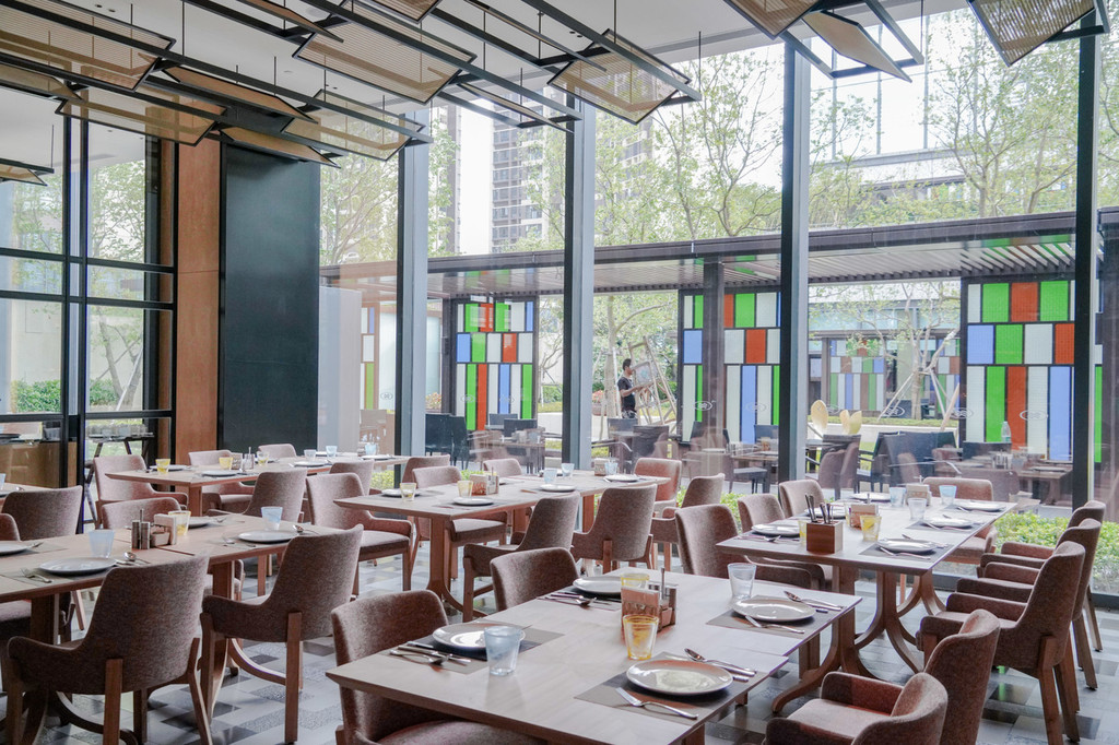 大堂的落地玻璃窗,既使得整个大堂明亮通透,也能使坐在大堂的客人观赏到玻璃窗外的满眼绿意。在这里享用一顿下午茶,可谓是味觉和视觉的双重享受。