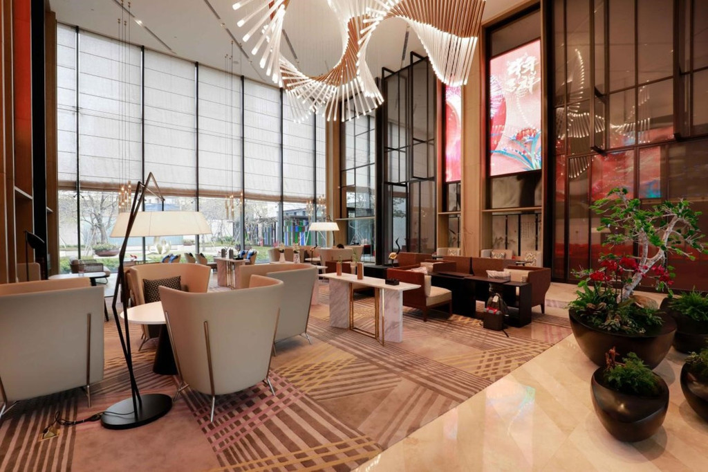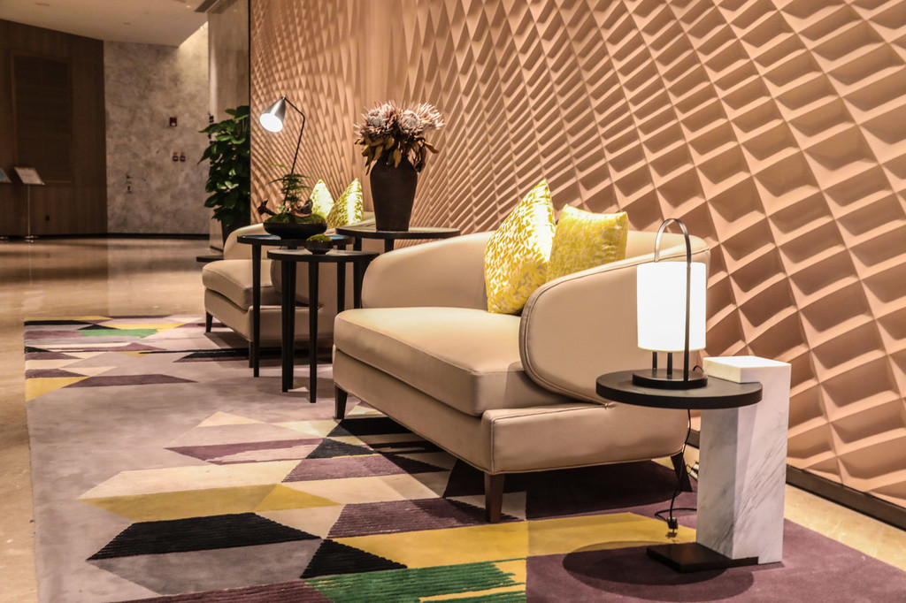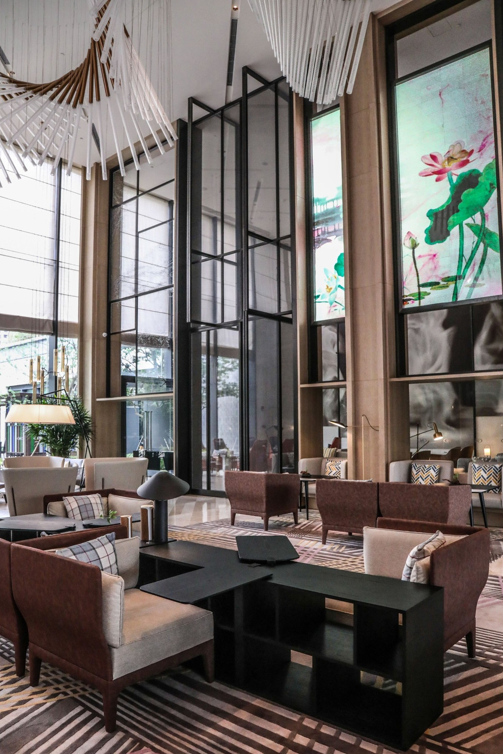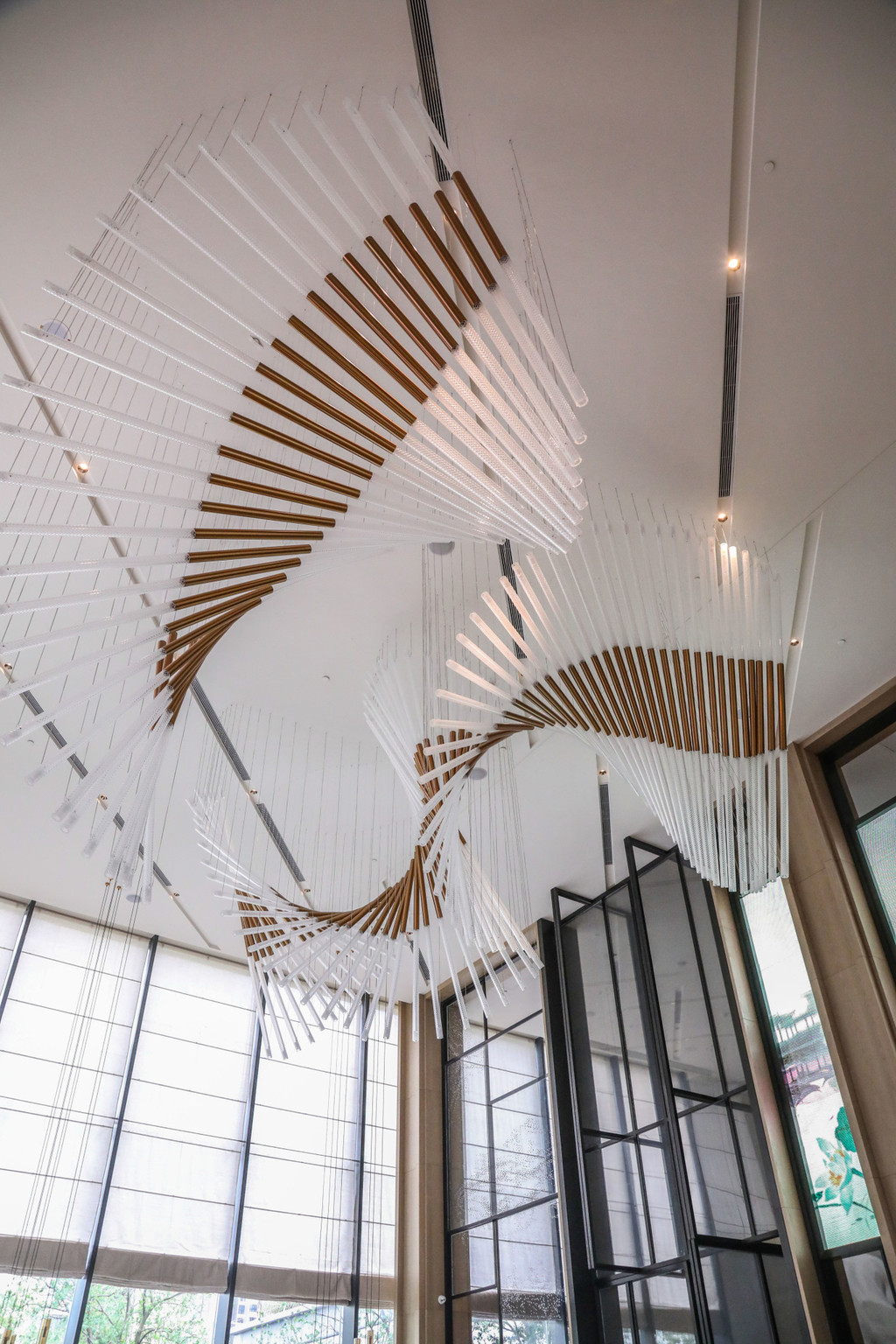 酒店的设计巧妙糅合了摩登时尚的现代风格及岭南风情,走入酒店大堂,简约的建筑风格,加上那武术棍花造型的吊灯,就有一种很大气又雅致的感觉。