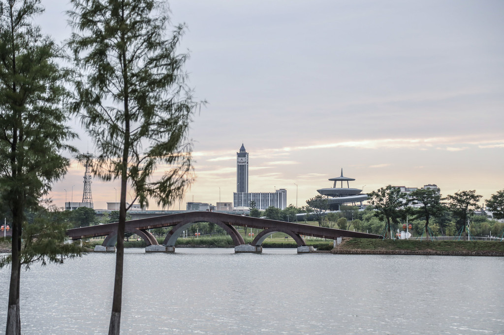 在步道上走走,看看微风吹起文瀚湖上的涟漪,也有一种别样的宁静。