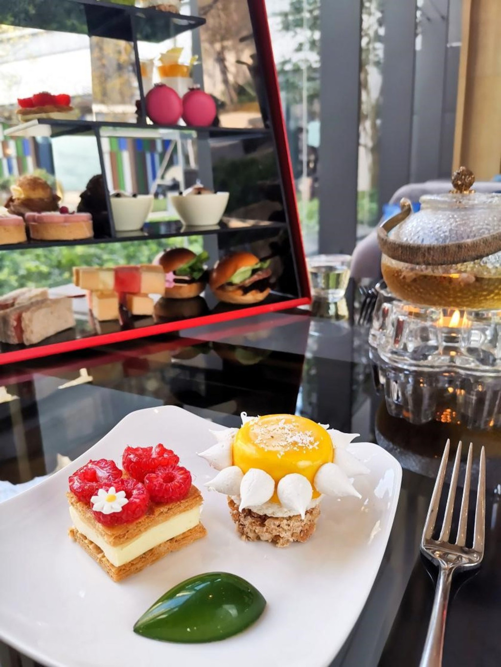 品尝美点,配上一壶香气四溢的玫瑰花茶,很是解腻。坐在大堂吧巨大的落地玻璃前,看看酒店庭院中的迷你花市,温暖的阳光洒落在身上,暖洋洋的阳光加上美味的点心,这样的午后总是格外明媚而幸福。