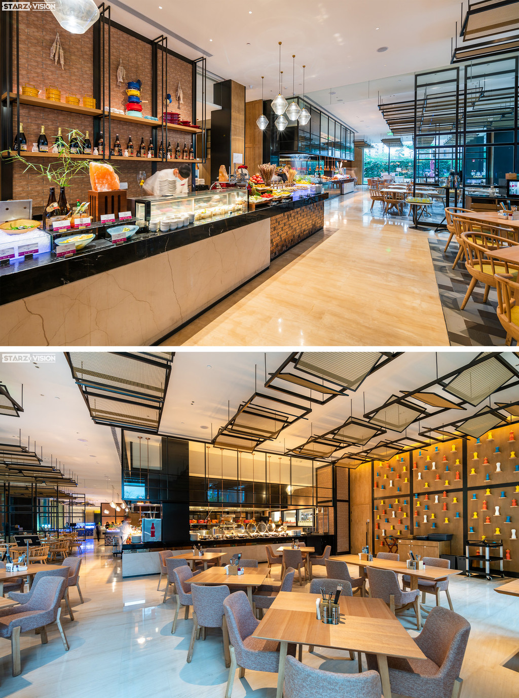 流连在中庭花园的美景之际,宾客还可以在「月色西餐厅」享受中西餐、东南亚风味,以及当地的饕餮美味。餐厅品种丰富多样,食材新鲜,既有优质海鲜,也有地道粤式菜肴,还有让人垂涎欲滴的烧烤美食,以及各种甜品、水果和饮品。菜品琳琅满目,让宾客足不出户便能品尝到各地特色美食佳肴,尽享一份来自舌尖上的美味时光。