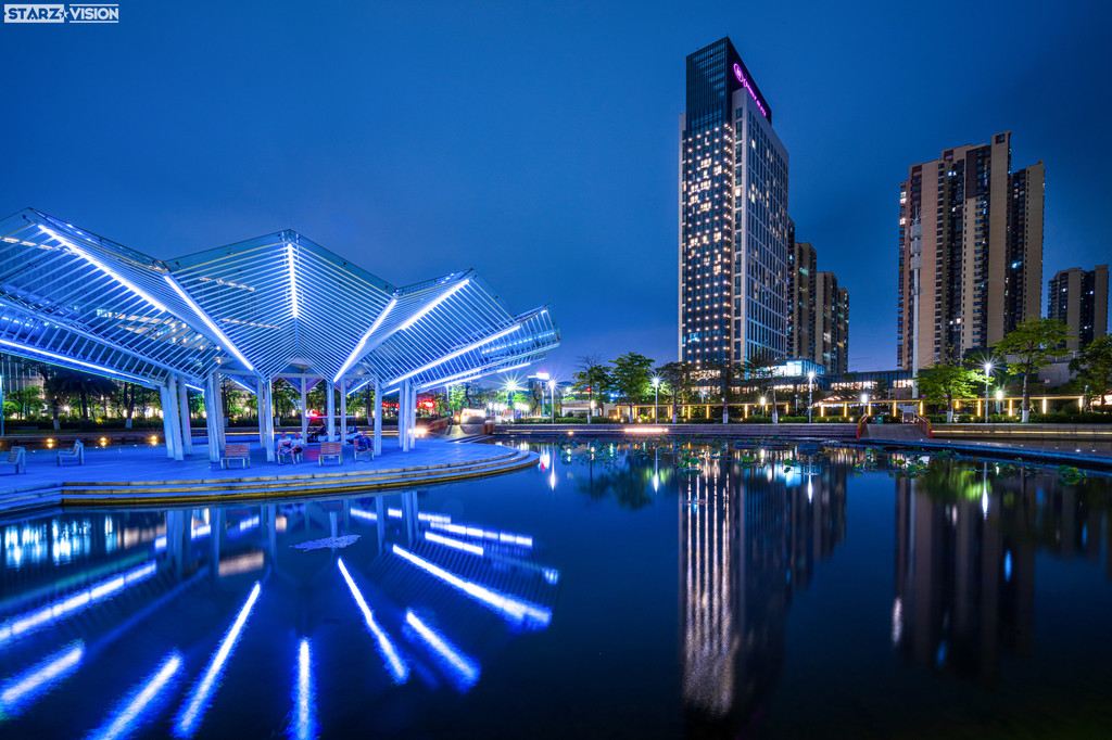 夜幕降临后的三山新城,仿佛披上了一件迷人的衣裳,夜色生辉。而位于「佛山南海保利皇冠假日酒店」旁的文翰湖更是亮起了醉人的霓虹灯,清澈的湖水倒映出城市繁华迷人的景色。与家人或情侣漫步于湖畔,欣赏这份独有的岭南魅夜秀色,是多么幸福的事情。