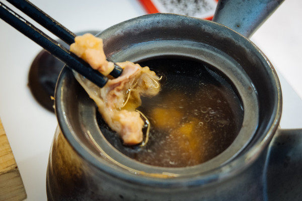 吃煲仔菜怎么能少得了汤呢?这不我们就来了一份花旗参乌鸡汤,这里的汤也非常的有特色,这一碗充满了仪式感的靓汤,最有特色的一点是,它是盛在“茶壶”之中上桌的。