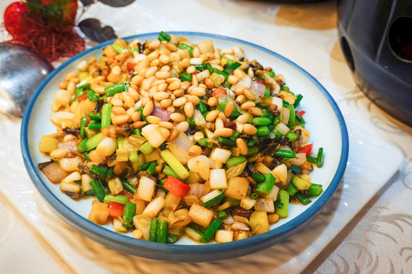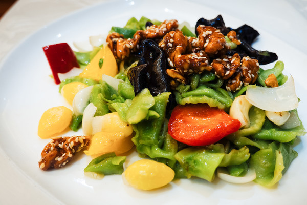 春回大地,莴笋干配上木耳,面上加上一些核桃,吃起来非常的脆