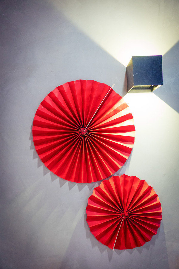 灯的下面,还配有两把鲜红的”伞“,使得这面墙壁也鲜活了起来呢!