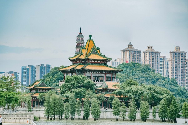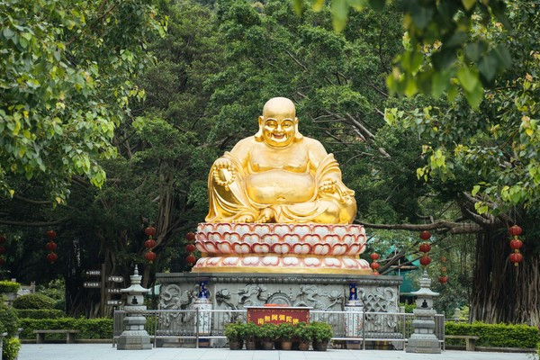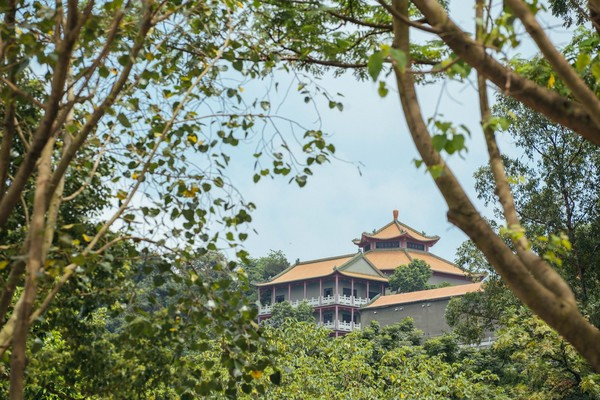 进入寺庙就可以看到一座金光闪闪的大佛,拾级而上,到达山顶可俯瞰顺德城市风貌。半山腰处还设有斋堂,可以前去品尝一番。