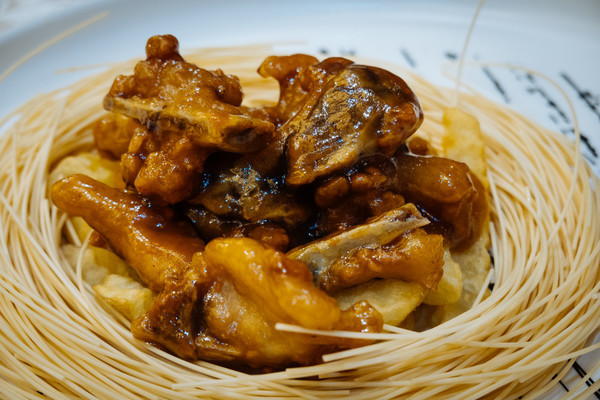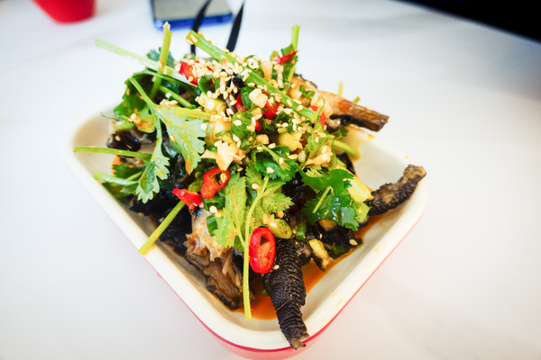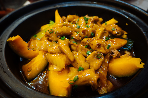 这道叫做川味无骨黑凤爪的菜,看上去就满满的四川风味,黑色的凤爪很脆,非常爽口,面上的芝麻也让它非常的香,这道菜其实只是饭前的开胃菜,因为来这里当然是要吃煲仔菜的啦!