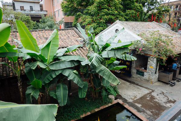 流水般源源不断的客人,给老房子带来了生机。从德云居的院门进入,青砖黛瓦之间,点缀着阔大的芭蕉叶,还有各种不知名的植物,和作为原住民的老树和老屋一起,上演一派和谐共生的春天景象。