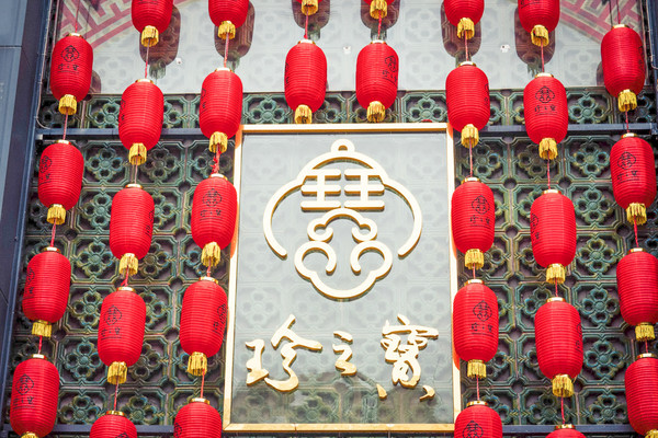 门外也挂着非常多印有“珍之宝”字样的红灯笼,非常好看。