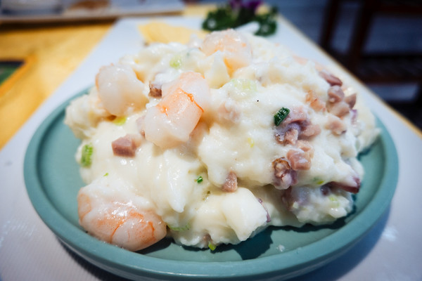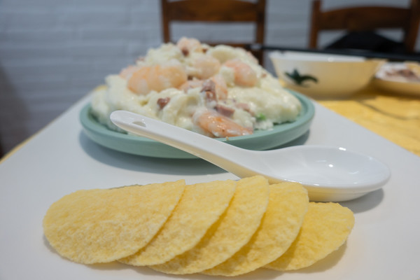 炒牛奶成菜凝而不泻,奶香醇厚、洁白滑嫩。加上鲜虾球、果仁和叉烧粒,突破牛奶的圆融,丰富的层次感点亮意外惊喜。