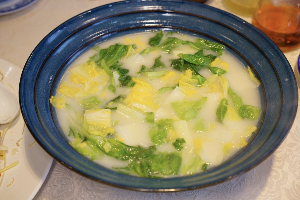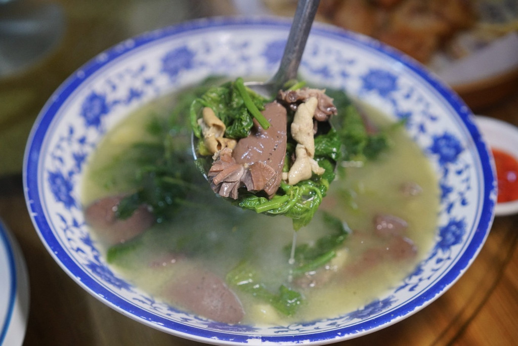 广东 人吃饭必须要有菜,有汤就更好,所以就有上汤的菜式,加上好吃的鸡杂,一个菜式解决了三种需求~