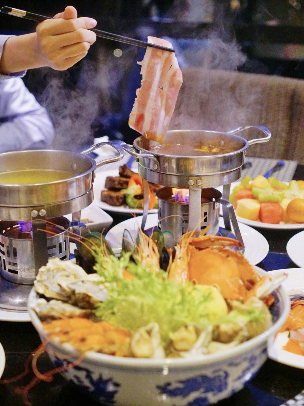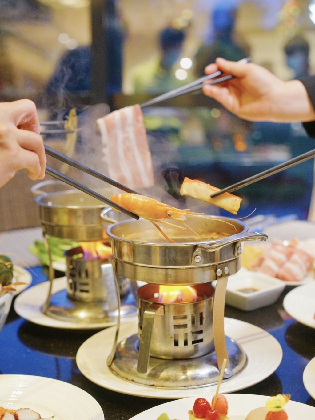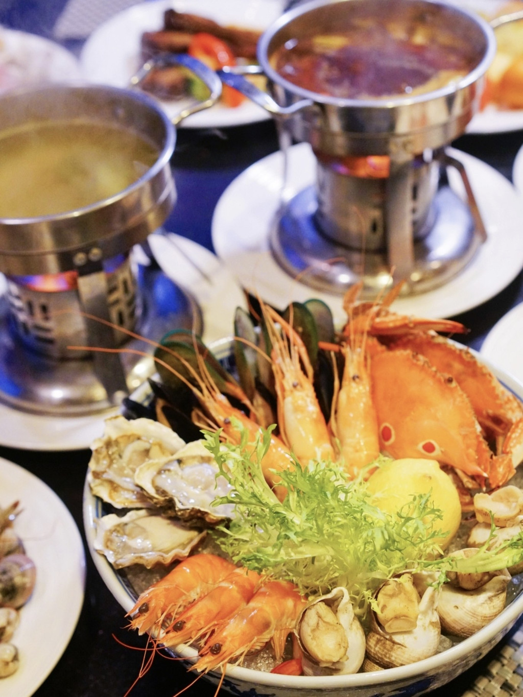 吃火锅就得摆出满汉全席的气势。酒店的海鲜种类齐全,甜点,冷热自助选择,任君喜爱~