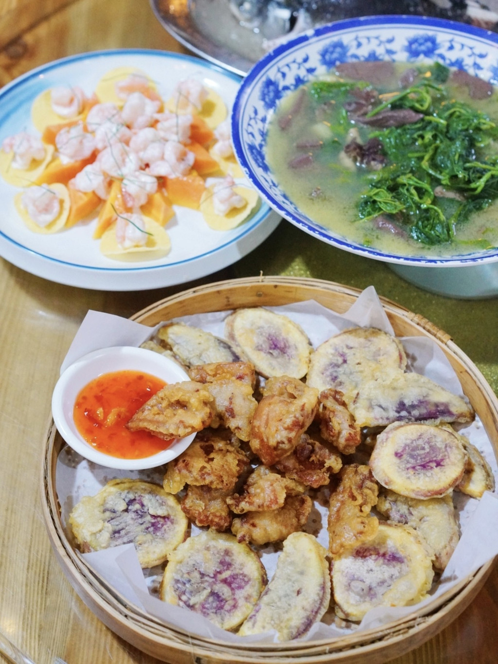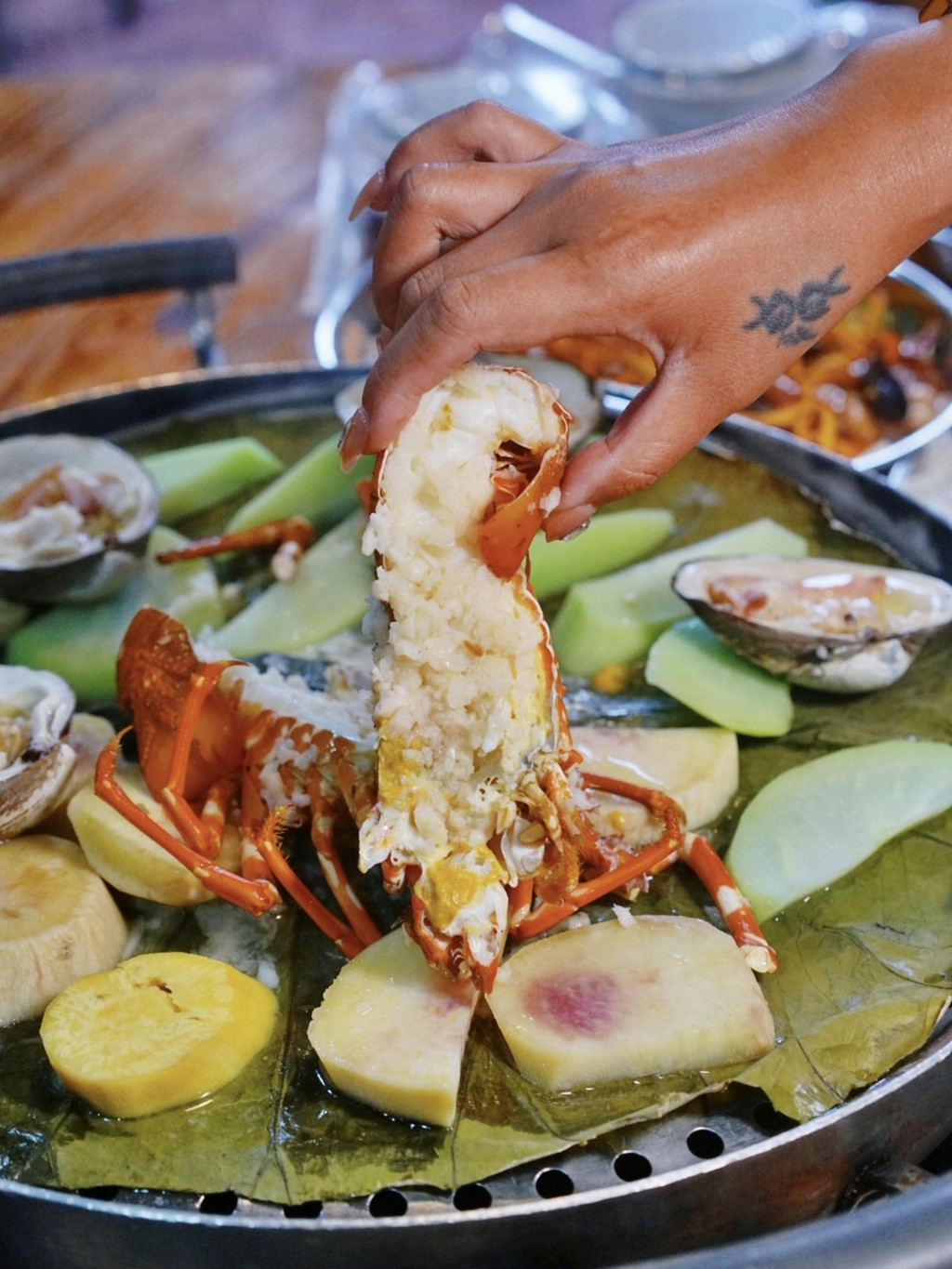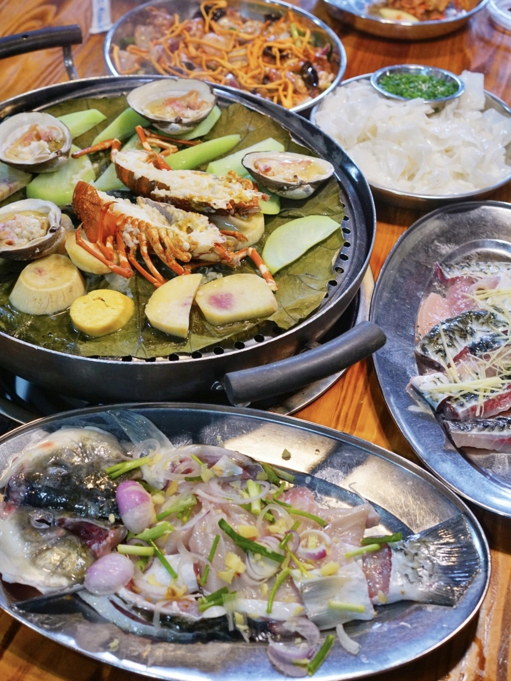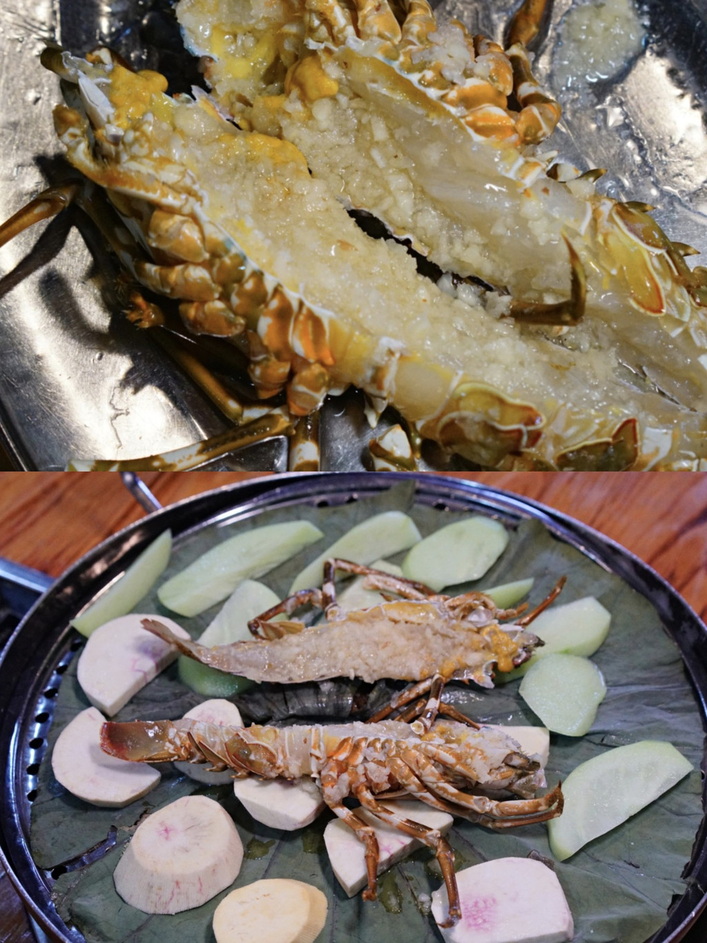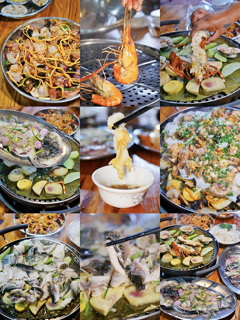 剔骨后的鲫鱼超级嫩滑,清甜嫩滑,没有一丝腥味,用番薯,丝瓜垫底,每加一次海鲜,浓郁的汤汁最后会被瓜果吸收,非常甜美!