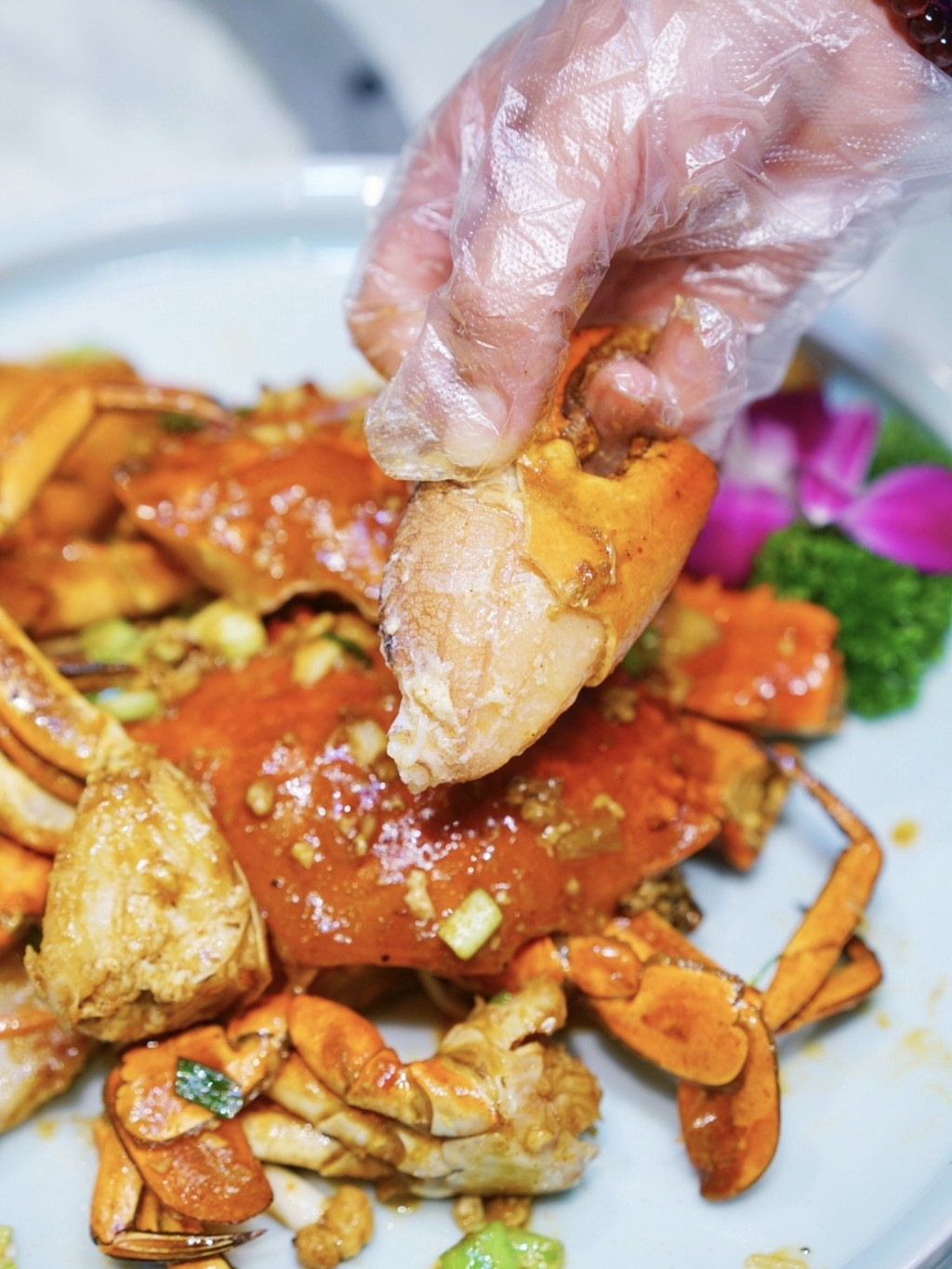 肥美的蟹肉配搭萝卜糕是新鲜的吃法,萝卜糕吸收了浓郁的蟹汁,口感软糯。其中XO酱制作就非常精细,用虾籽 鱼干 瑶柱干 火腿等海味熬制而成,吃起来有各种海鲜的浓郁香气~