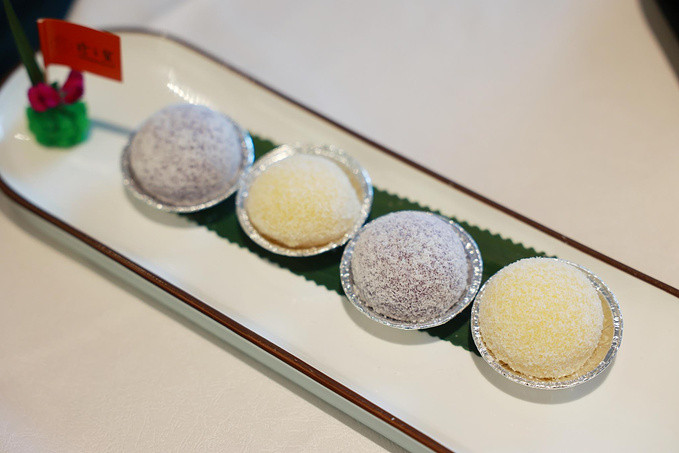 团圆点心拼盘,鸟笼里的蛋挞和小兔子,蛋挞要趁热吃。小兔子是椰浆做的,嘟嘟的Q弹可人。