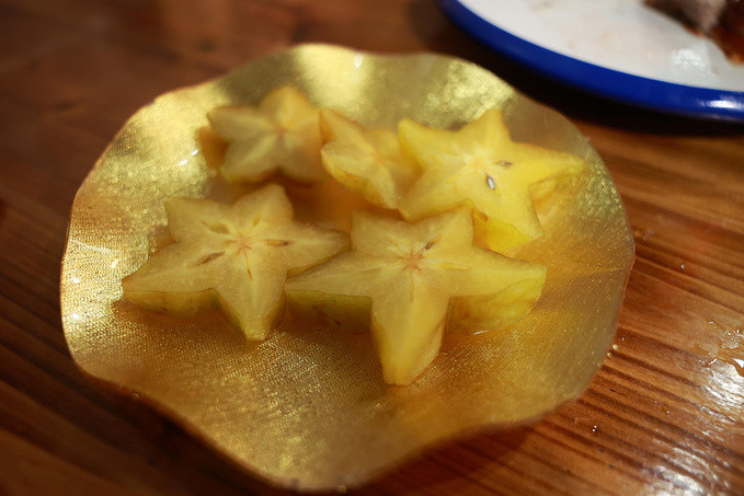 吃完后送了一小碟水果,广东特产杨桃,清甜中带着一点酸。