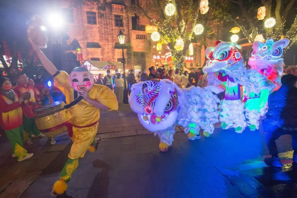 来到禅城,人们把新年的喜庆点缀在各个景区的街头巷尾,岭南天地推出“NOT ALONE奇遇接龙迎新主题展”“舞龙醒狮贺新春”等活动,以昂扬之姿开启新一年的幸福;在梁园,一场身临其境的大型古风RPG游戏,把你拉进时光隧道,仿佛经历穿越,在古色古香的园林中感受一次惊心动魄的冒险;在热烈的锣鼓声中,祖庙的醒狮在梅花桩上闪展腾挪,采撷下带有美好寓意的“青”。