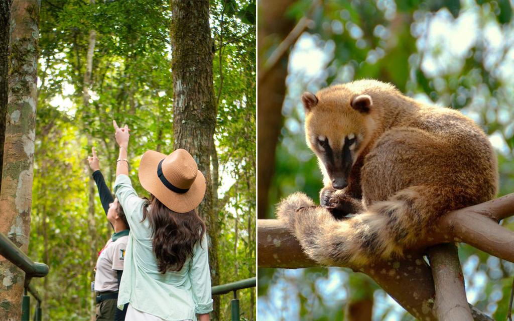 下车后,随向导沿着600米长的小径继续深入雨林。阳光穿透树叶洒落林间,空气中弥漫着湿润清新的气息,偶尔还能碰见穿梭林间的小动物,一切静谧而神秘。