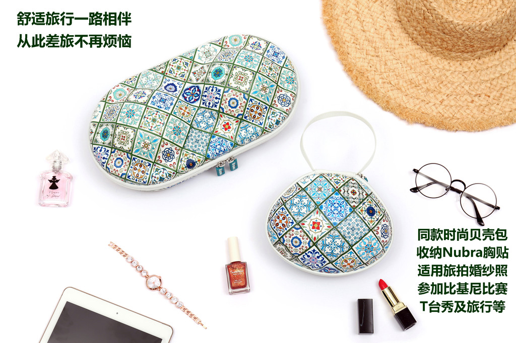 Braiou时尚内衣收纳盒高档旅行文胸包(绿色罗浮宫经典款)-同款时尚贝壳包【旅拍婚纱照 比基尼比赛 T台走秀 游泳】