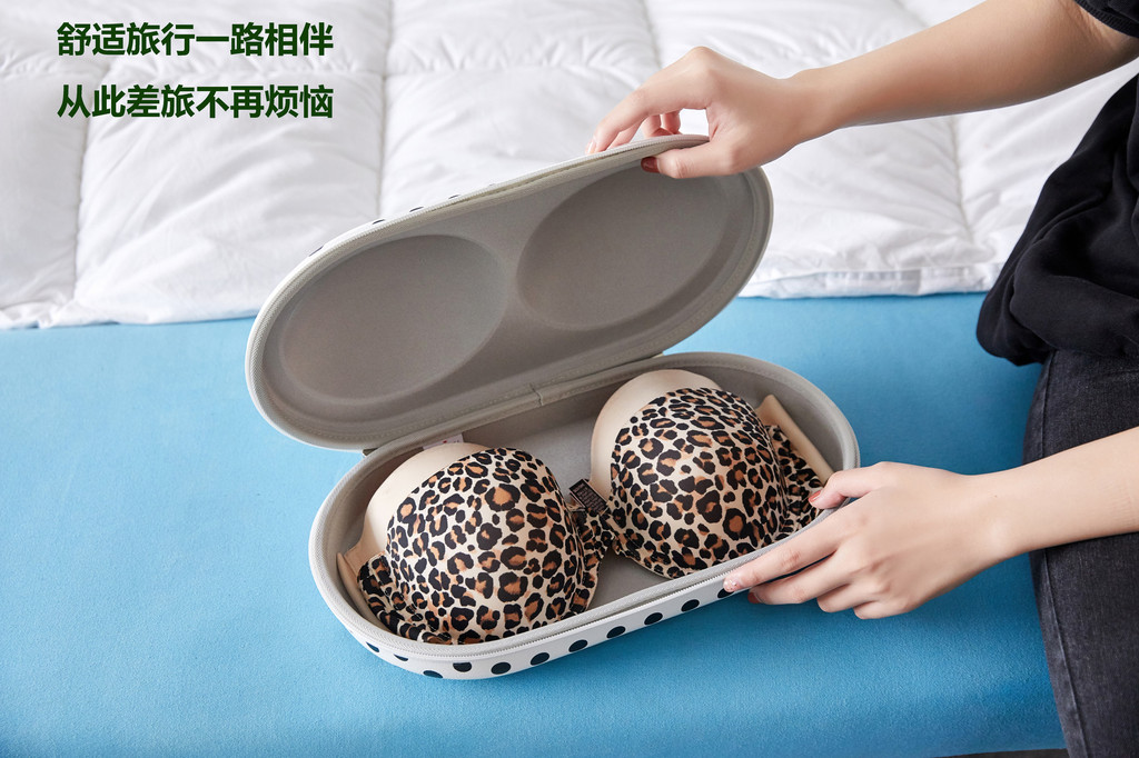 Braiou高档旅行文胸收纳盒时尚内衣盒(灰色豹纹经典款)