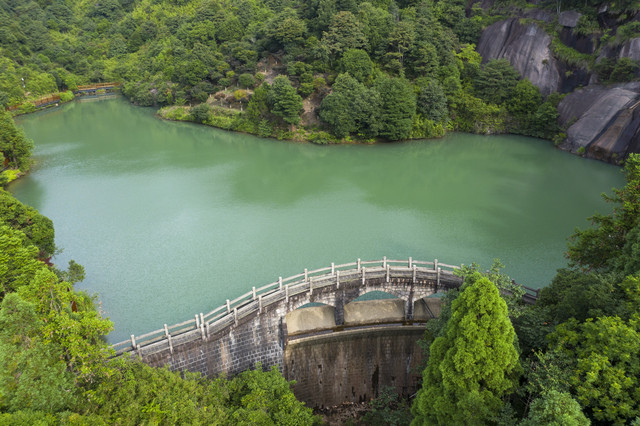 龙潭湖:水源充沛,湖水浸过溢洪坝,形成如珠似玉的水帘。背面的十八罗汉岩倒映湖中,波光粼粼,游人在坝顶的回廊漫步,如入仙境。每年的春夏两季,四周开满五色杜鹃,姹紫嫣红,更令人流连忘返。