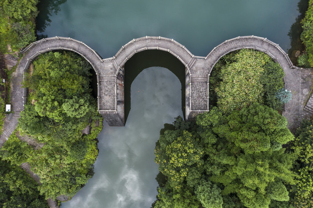 古坛危跨千层嶂,绿水遥通九曲溪。