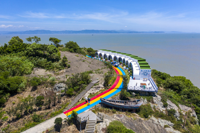 牛郎岗游玩的项目有很多,高空水滑道,国内少有;海滩平坦,砂质细腻;露营地时尚浪漫,深受年轻人喜欢;周围的礁石千奇百怪,蓝色的灯塔更是拍照最美的背景。