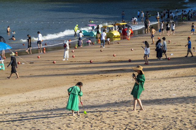 推荐理由:这里是个消夏避暑的好地方,特别适合亲子,许多人带着家人孩子在海滩上嬉戏,在大海里畅游,而且海里的保护设施非常完善。