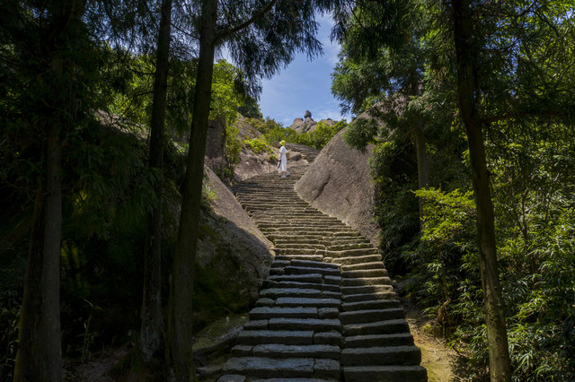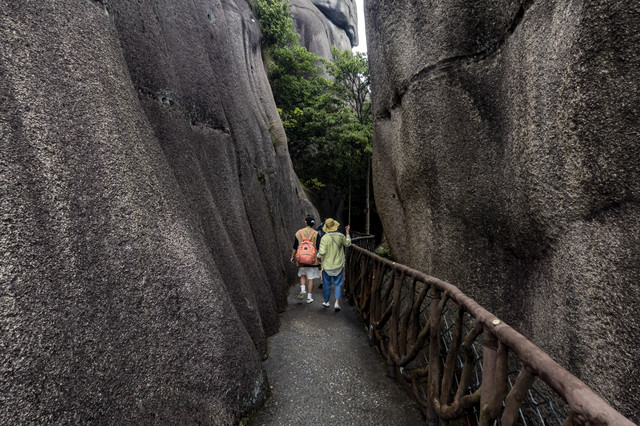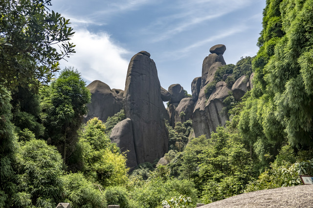 山谷间,风撼松林,声如波涛;溪水旁,竹影婆娑,清风拂面。松竹间行走,在炎热的夏日多了一丝清凉,而洞道穿越,更是太姥山的一大特色“石奇,洞更奇”。