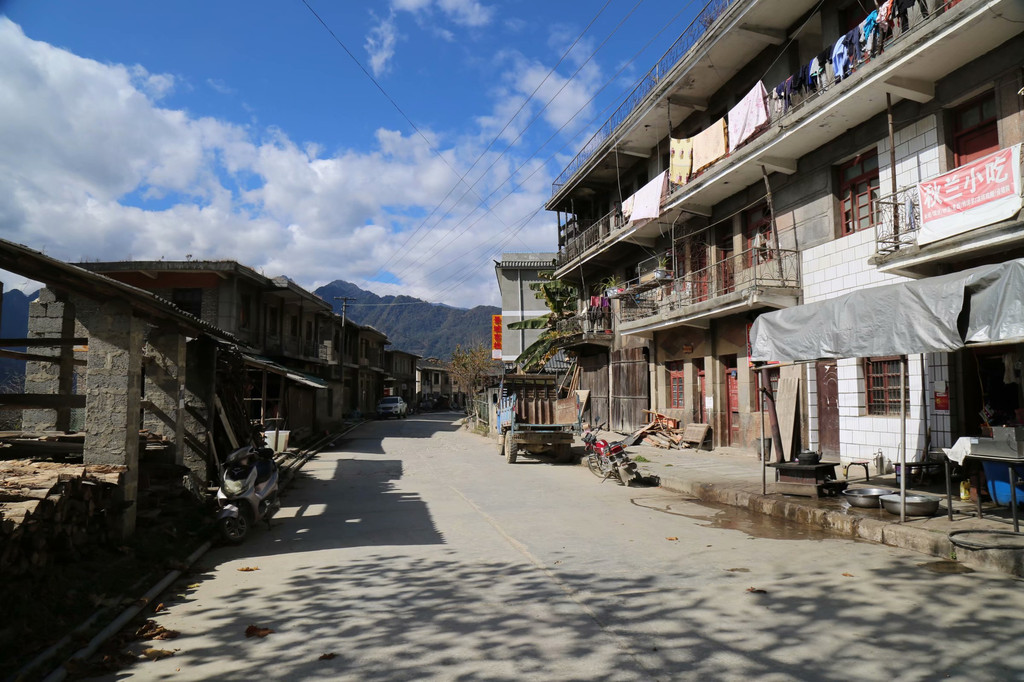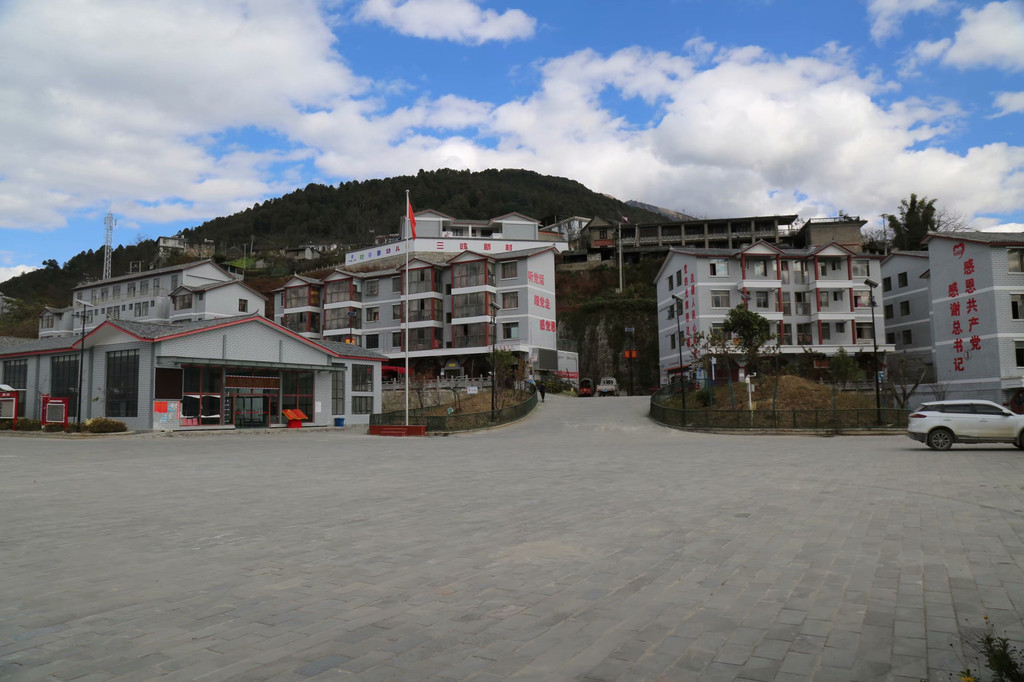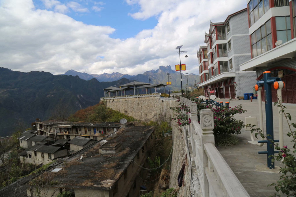 店家是母女二人租房经营的,祖母不愿意离开祖屋仍然留在老城里,母女已经迁居安置中心的新房子。安置中心不远,就在知子罗观景台,是三峡援建的一片新区,按人户进行公平、公正、公开的分配,张榜公示,免费入住。在一位傈僳族小伙子的引领下,我们来到新区参观。
