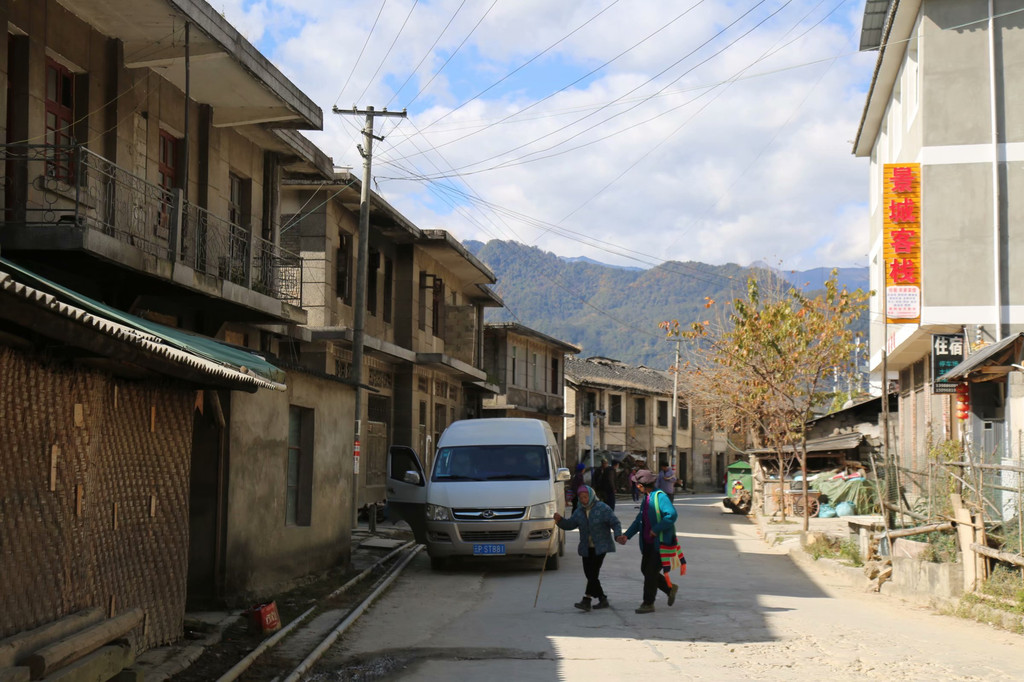 如今街上没有银行,没有邮局,没有通信公司,更没有高楼新房,八角楼是县城的标志性建筑,位于旧城的入口处,呈八角形,共三层,当时是作为图书馆建设的,落成后还没有来得及装入一册图书,就匆匆结束了使命,如今称作怒族博物馆,依旧空荡荡地矗立着。登上三楼舷梯,俯瞰全城,知子罗的建筑虽然有些破败,但无论建筑设计还是街道布局,依然能看出这个城市曾经的辉煌。